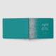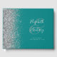 This elegant wedding guest book features a left-hand border of faux silver glitter on a teal blue background. Easily customise the silver grey text with the names of the bride and groom in whimsical handwriting calligraphy over a large ampersand. Add additional text of your choice to the front and spine.