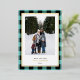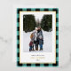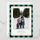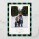 Send holiday greetings with these deluxe photo Christmas cards, featuring your favourite vertical photo set against a hand-drawn light teal green and black buffalo plaid pattern framed by a border real gold foil. Customise your holiday message with a modern lettering style in the editable text area, and add your family name in real gold foil!!! The back of the card provides space for an additional photo and a personalised holiday message