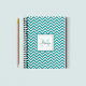 Personalised spiral notebook features a trendy teal chevron pattern with custom name in black handwriting font and monogram in lighter teal shade in white square frame.