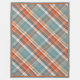 Modern Teal Dark Blue Orange White Plaid Pattern Fleece Blanket