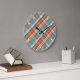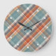 Modern Teal Dark Blue Orange White Plaid Pattern Large Clock