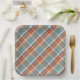 Modern Teal Dark Blue Orange White Plaid Pattern Paper Plate