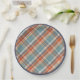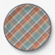 Modern Teal Dark Blue Orange White Plaid Pattern Paper Plate