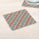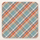 Modern Teal Dark Blue Orange White Plaid Pattern Square Paper Coaster