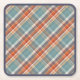 Modern Teal Dark Blue Orange White Plaid Pattern Square Paper Coaster