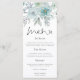 Modern Teal Florals Sea Mist Wedding. Fresh pastel coloured florals border the top, with an elegant script for Menu and easy to personalise the rest of the text to your requirements.