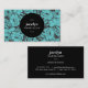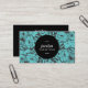 A traditional floral pattern is made modern with a bright teal and dark grey colour scheme. The centred black circle highlights your name or business name on this modern business card template. © 1201AM CREATIVE
