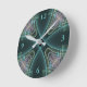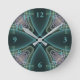 Modern Teal Geometric Fractal Art Graphic Round Clock