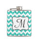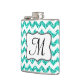 Modern Teal Glitter Chevron Monogram Whiskey Flask