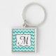 Modern Teal Glitter Chevron Zig Zag Stripe Monogram Initial Key Chain