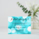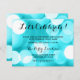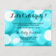 Trendy Bat Mitzvah party reception inserts with a teal blue bokeh glitter lights background and modern script font. Designs are flat printed graphics - NOT ACTUAL GLITTER.