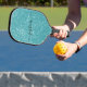Modern teal glitter script name pickleball paddle