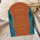 Modern Teal Gold Agate Burnt Orange Arch Wedding Invitation