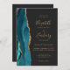 Modern Teal Gold Agate Dark QR Code Wedding Invitation