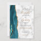 Modern Teal Gold Agate Marble QR Code Wedding Invitation