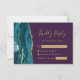 Modern Teal Gold Agate Purple Wedding RSVP Card