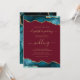 Modern Teal Gold Agate Script Burgundy Wedding Invitation