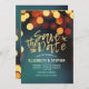 Modern Gold Script, Chic Teal and Gold Bokeh Glitter String Lights Save The Date / Wedding Invitation Card Templates.