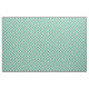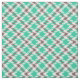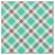 This modern cotton fabric features a trendy plaid pattern in teal green, brown, and white.