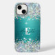 Modern Teal Holographic Faux Glitter Monogram Case-Mate iPhone Case