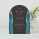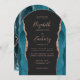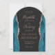 Modern Teal Rose Gold Agate Dark Arch Wedding Invitation