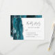The left-hand edge of this elegant modern wedding RSVP enclosure card features a teal blue watercolor agate border trimmed with faux silver glitter. The title "Kindly Reply" appears in handwriting script, with customisable text below in charcoal grey copperplate font on a white background. The reverse side features a matching teal and silver agate design.