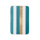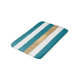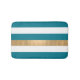 Chic bath mat done in a contemporary bold striped pattern, in teal, white and gold tone. Matching bathroom products are available.  Comes in three sizes.