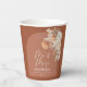 modern terracotta bohemian pampas grass Mr & Mrs wedding day party paper cup. Beautiful handprinted floral watercolors and modern script text. Modern on trend design.