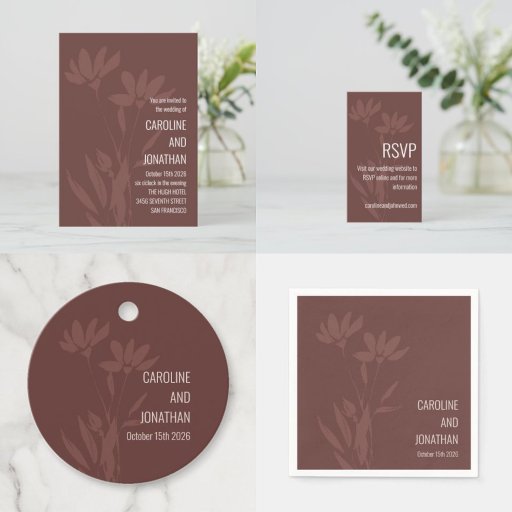 Terracotta Brown Modern Floral Silhouette WeddingDesigned by Opal Ellery