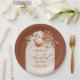 Add a touch of elegance to your celebration with these boho bridal shower paper plates, featuring watercolor terracotta florals, pampas grass, and a chic boho arch. The warm earthy tones of terracotta, copper, burnt orange, rust, dusty orange, and soft neutrals create a stylish and modern design that’s perfect for a trending boho chic bridal shower theme.