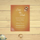Elegant golden brown with terracotta shades romantic Save the Date Wedding Card. The chrysanthemum flower on the front side and two hearts on the back side can be customised. Ideal for couples who believe in eternal love and a match made in heaven. The chrysanthemum flower stands for royalty.