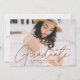 Invite guests to celebrate the grad with our stylish photo graduation invitations. The graduation invitations feature the graduate's photo with "Graduate" in a terracotta brown modern calligraphy script overlay. Personalise the front of the modern graduation invite by adding the graduate's name, school name, and graduation year. The invite reverses to display your graduation party details and a trendy terracotta and white dotted geometric pattern.