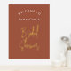 Modern Terracotta Calligraphy Script Welcome Bridal Shower Real Gold Foil Prints Poster. Customise it with your name of choice, put it in a frame or on cardboard to hang in a metal frame or put it on an easel. Background colour can be changed in the design tool if needed.