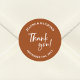 Modern Terracotta Thank You Script Wedding Favour Classic Round Sticker