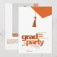 A minimalist terracotta tassel graphic and bold “grad party” headline pairs with a clean photo layout and contemporary design for a stylish, editorial look. Fully customizable colors, text, and photo make it easy to create a unique invitation for your graduate.