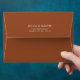 Expectations met; I liked that I had the opportunity to include our address on the back of the envelope. This color matched very well with my save the date. The color was the same as shown above. I had our address labeled on the back of the envelope and the font/printing met my expectations.