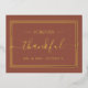 This simple yet modern and elegant terracotta and foil Thank You postcard is an easy way of sending your heartfelt thanks. "Forever Thankful" is featured boldly across the front along with "Mr. and Mrs." in the foil colour of your choice. The text is highlighted by a foiled frame. The terracotta background can easily be changed to any colour of the rainbow. A handwritten note on the back of the postcard gives it a personal touch.