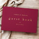 Modern and elegant wedding guest book with the bride's and groom's name in real foil. The burgundy background colour can be changed in the design tool.