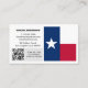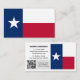 Business Cards: Modern Texas business card featuring flag of Texas on one side and your details together with scannable QR Code, small Texas flag on the other side. Easily customise link in QR Code for your website or mobile number, personalise name, address details or change flag on the side for your company logo, personal photo or any other image. Make it your business or just card for moving house.