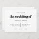 This ultra modern, black and white wedding invitation features bold typography with a mix of standard and italic serif text. The back of the invitation includes a scannable QR code so your guests can RSVP online and visit your wedding website. A simple and elegant look that will work perfectly with your modern wedding style.