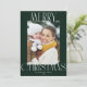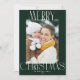 Celebrate the season with our modern trendy photo Christmas Card! This card has a white script photo design and a personal greeting message at the back.