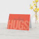A simple modern card packed with kindness and affection, this design has "sending hugs" text in a combination of bold and handwritten script on the front of the card. The two-tone deep orange with light orange text is a popular colour choice and adds to the contemporary look of the card. Inside text is a thoughtful expression that can be ordered as written or personalised with your own desired inside text. This card is not only a great choice for special occasions like Valentine's Day, it is also a perfect choice for sending a thoughtful card to someone who is ill, needs a pick-me-up, or perhaps a family member or friend who is living alone or in a nursing home. So many possibilities to brighten someone's day with this simple card.