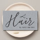 Elegant customisable business card template with black scissors icon /texture grey background and handwriting bold text. Modern clean design, perfect for hair stylist, hairdresser.