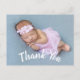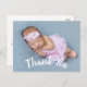 Modern thank you baby birth announcement postcards with white curved script on the front. Easily add your custom photo and text to the front and back of the card.