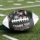 Modern Leather Thank you Coach Team Name and Team Photo Football. The text is trendy white typography on a leather printed background with stripes. Personalise with your coach name, team name and year. You can change any text on the football or erase it. A great gift for a coach! Add a team photo and get the team to sign the non-designed areas of the ball with a fine point permanent marker for a wonderful keepsake.