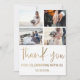 Modern minimalist thank you card. Featuring large elegant calligraphy in faux gold leaf and spaces to add 4 of your special wedding photos. Easy and fun to customise to create your own unique 'Thank you' cards.