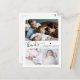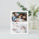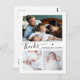 A simple and elegant modern birth announcement featuring a 3 photo collage of your newborn with "Thanks" in a stylish script and your baby´s name and stats in modern typography with a tiny heart above. On the reverse, there is your customisable thank-you message. Use the "customise" button to replace photos and edit text.