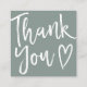 Modern thank you script order minimal sage green square business card