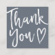 Modern minimalist and stylish white and dusty blue business order thank you brush script font with a heart. Add your social media. With an elegant signature script font, all the colours are editable , add your logo.