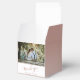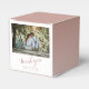 Modern Thank you Wedding Couple Photo Favour Box. Personalise with bride and groom`s names, wedding date and one of your photos. The thank-you text is in a trendy script.